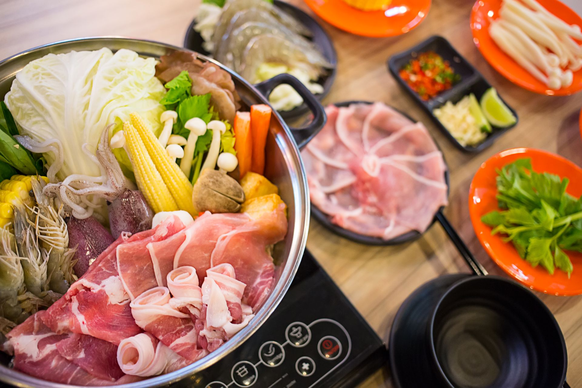 肉類與海鮮是火鍋的重頭戲,建議以低脂蛋白質為優先,如雞胸肉、里肌肉、魚片、蝦子或蛤蜊,既有飽足感又不易囤積脂肪。加工火鍋料、培根、肥牛則油脂與鈉含量高,適量即可,不宜成為主角。
