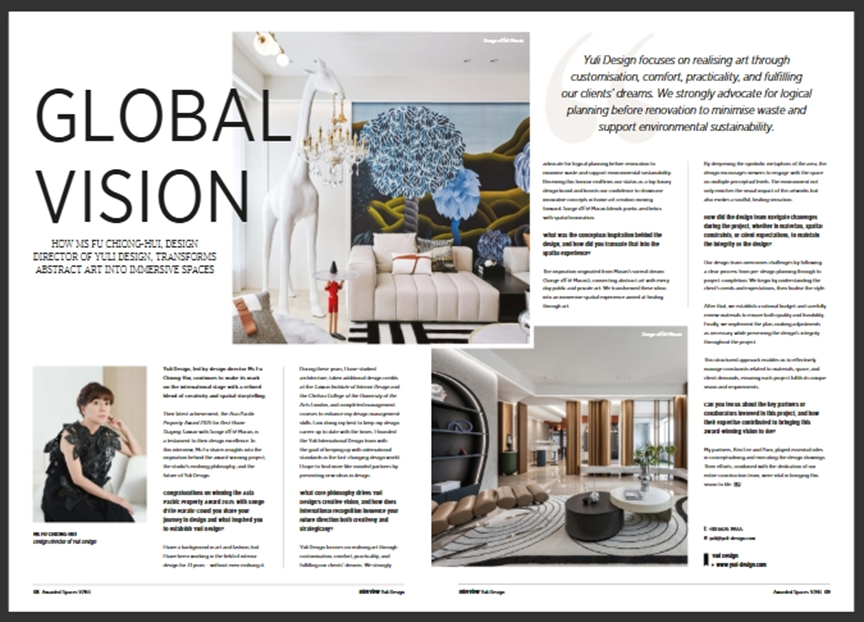 台灣設計能量再度登上國際舞台!由里國際設計以卓越的創意與深厚的人文底蘊,接連入選高端設計雜誌《Awarded Spaces》與《International Property & Travel》封面與特別專題,讓台灣更為國際所知。這些雜誌多出現在國際高端商務艙,讓全球旅客透過由里設計,看見台灣不只有台積電,更擁有豐沛的文化與創意能量。