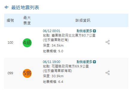 台灣東部海域昨(11)日晚間7時發生規模6.4地震,幾乎全台有感。